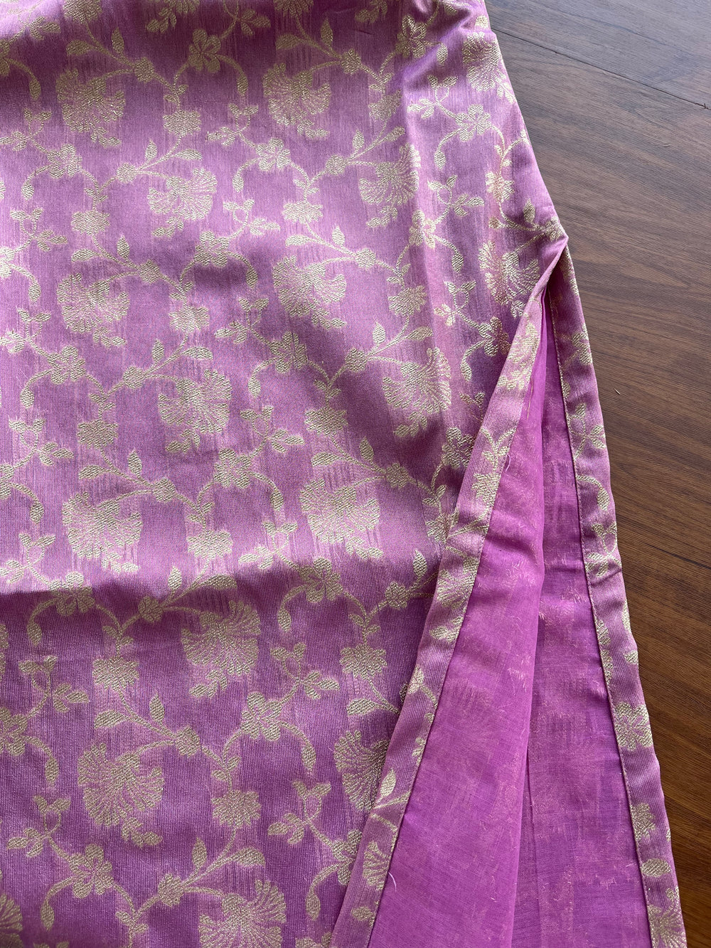 Elevate your wardrobe with this elegant lavender pink tissue silk kurta set. Crafted with a soft cotton lining for ultimate comfort, the kurta drapes beautifully, making it perfect for festive occasions or casual celebrations. Gentle on care, it is recommended to mild hand wash or dry clean to maintain its delicate sheen and texture.