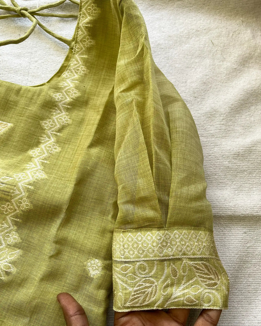 Green Cotton Jute Silk Kurta Set with Floral Weaving & Cotton Lining – Diwali Exclusive