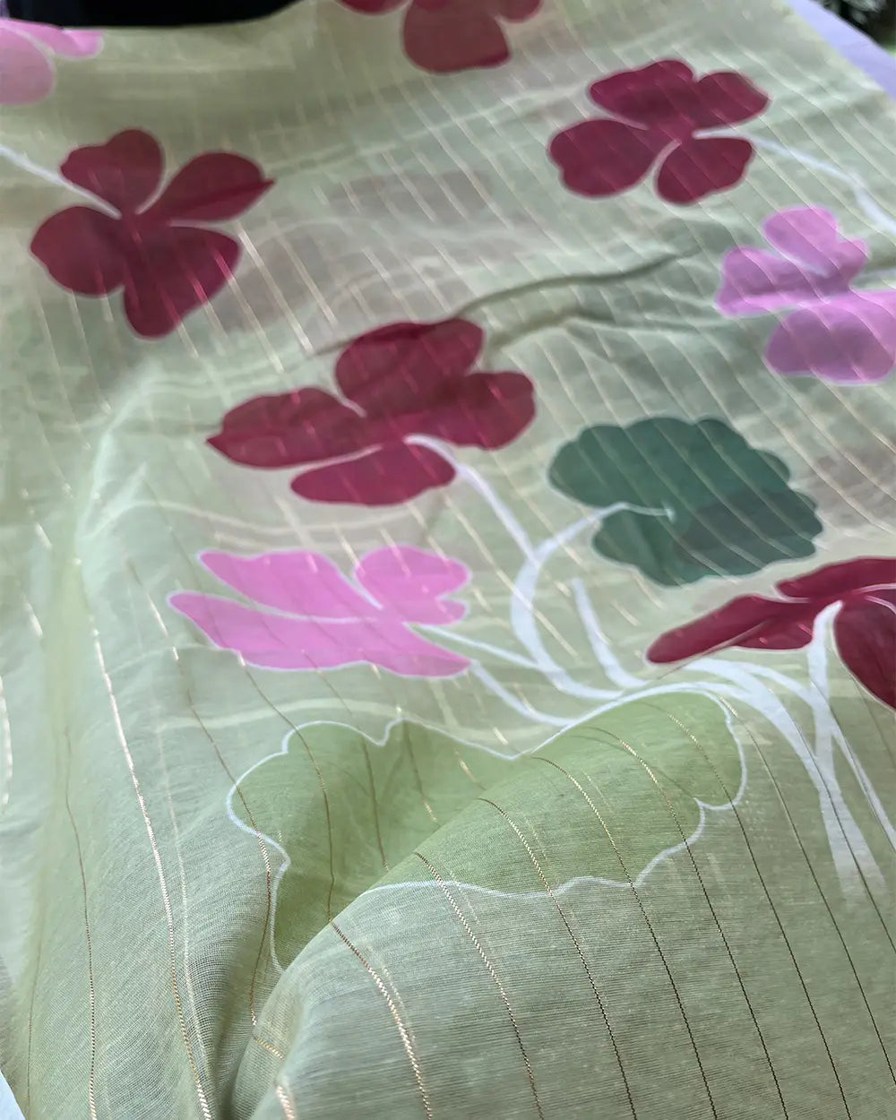 Elevate your ethnic wardrobe with this premium Chanderi silk kurta set featuring a graceful lotus motif weave. The rich texture of Chanderi silk blends traditional artistry with timeless elegance, making it a perfect pick for festive and special occasions.