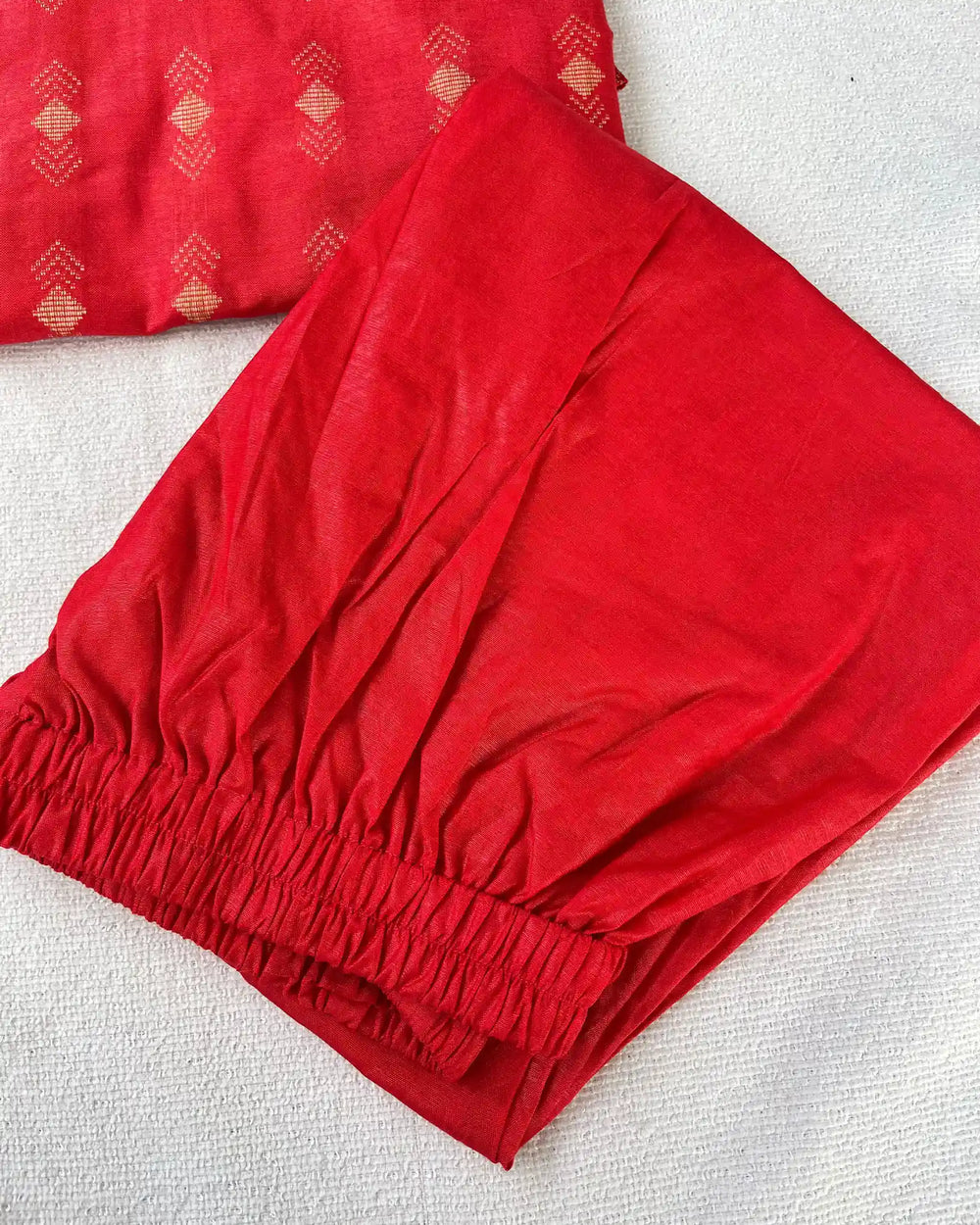 A timeless statement in heritage silk — this red set blends tradition with regal grace.