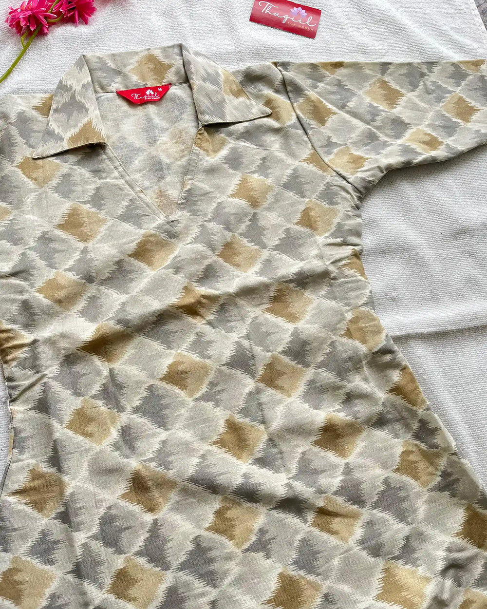 Refined yet rooted — this ikkat kurta blends heritage weaving with contemporary polish for everyday elegance.