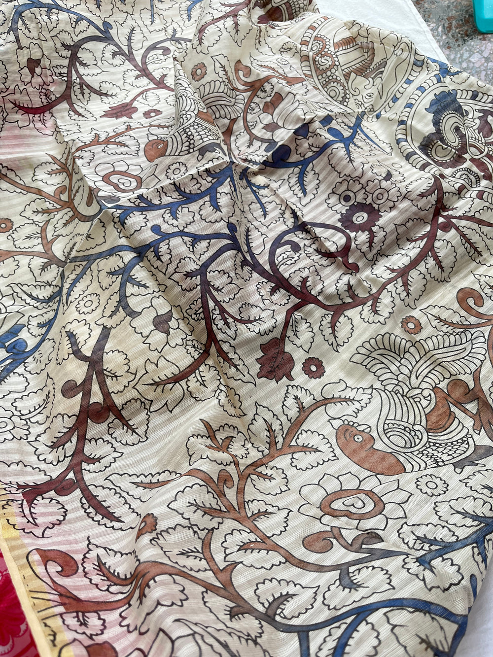 The Dupatta: A drape dipped in heritage—the Kalamkari piece tells tales in every motif, turning tradition into wearable art.