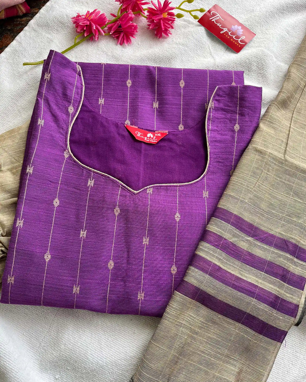 A modern classic — this violet set brings quiet elegance to your ethnic wardrobe.